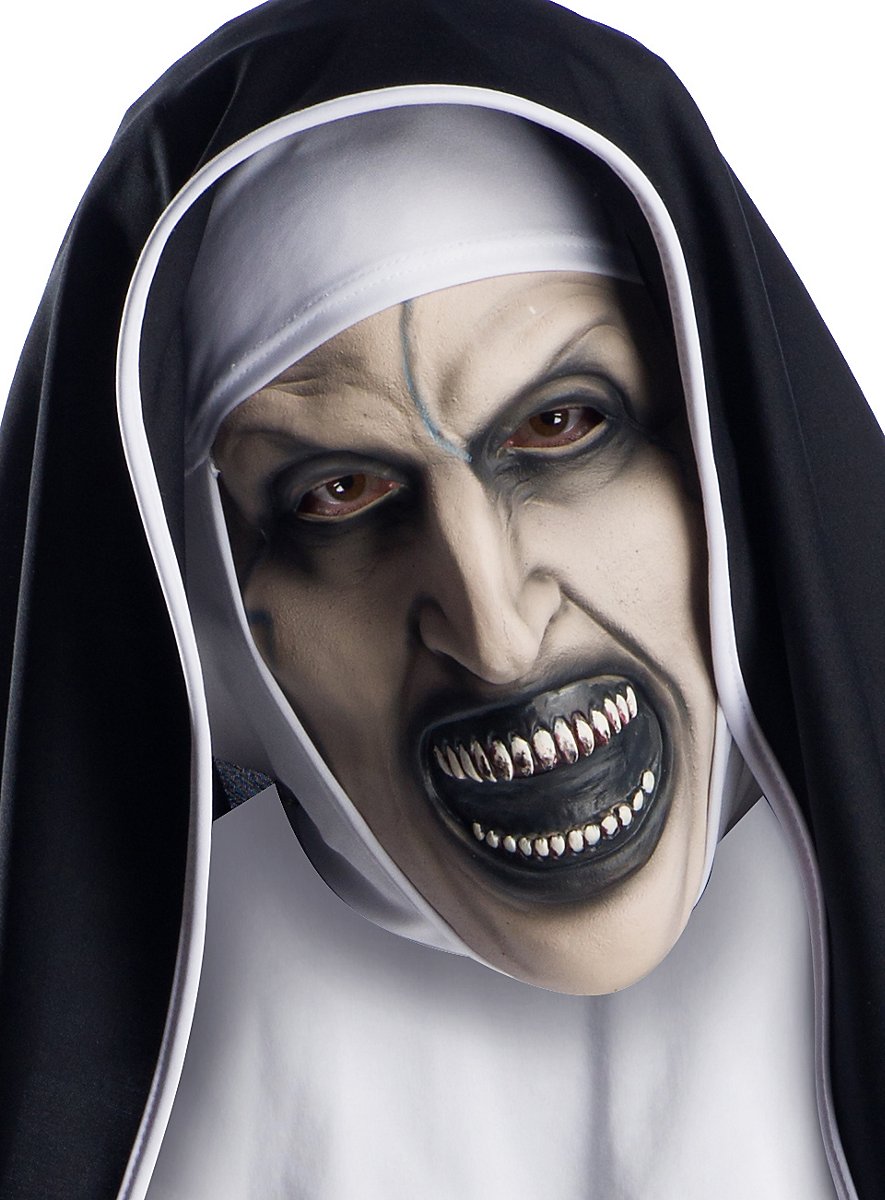 • il viso distorto ha occhi scuri, una bocca con labbra nere e denti scoloriti