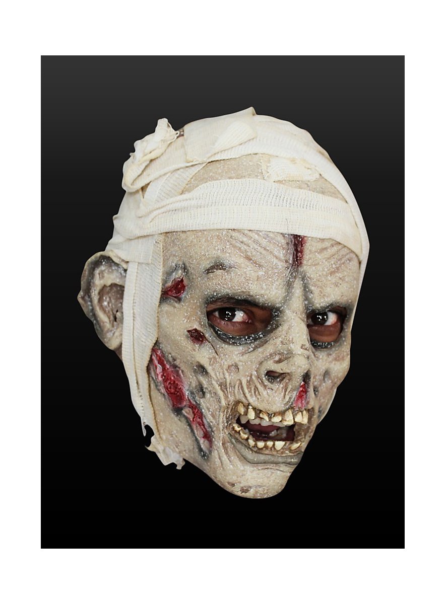 Maschera da mummia in lattice per bambini dall'aspetto spaventosamente reale! Maschera con benda sulla testa e ferite sulla carne, lavorazione molto elaborata! Ottima per Halloween!