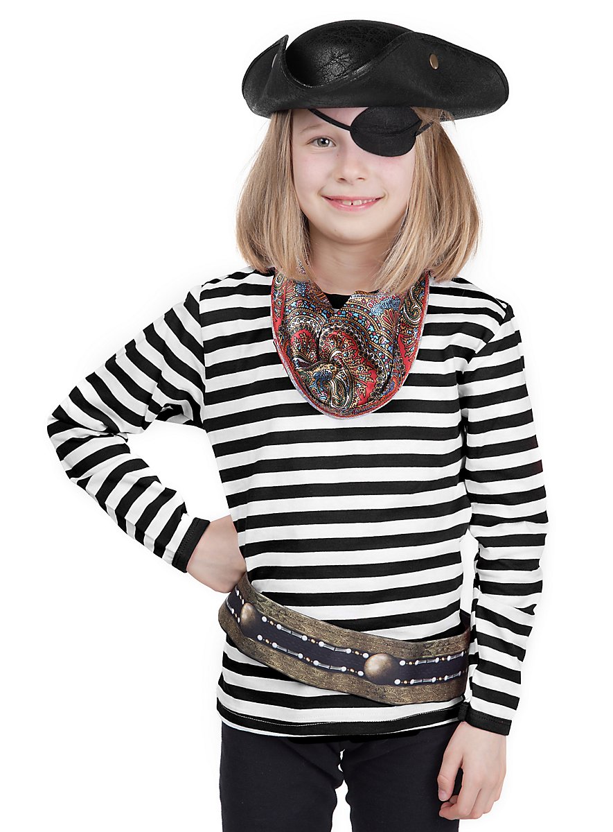• Set di quattro pezzi, composto da cappello a tricorno, benda per gli occhi, cintura in tessuto e fazzoletto da collo