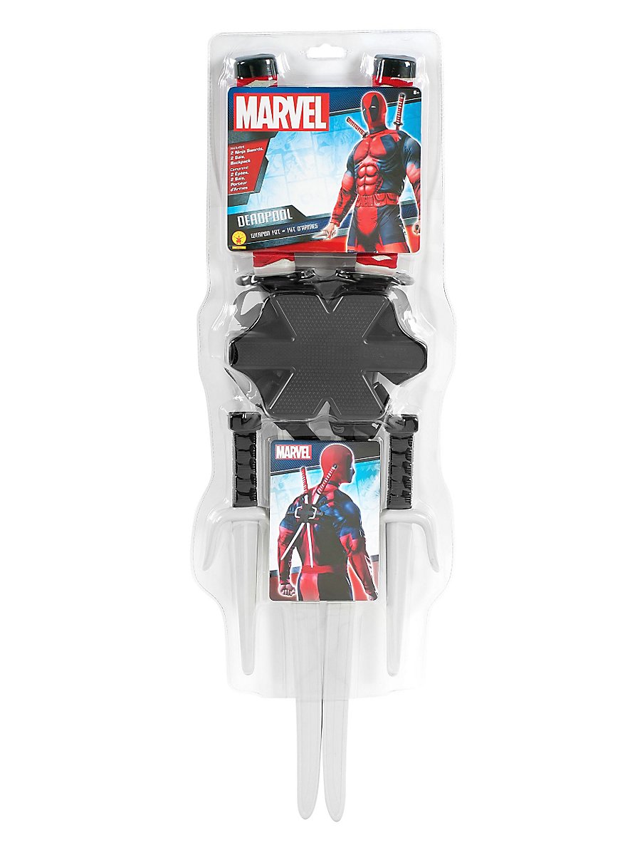 Ora è il momento di fare a pezzi! Set di cinque armi dell'irriverente antieroe della Marvel, Deadpool.